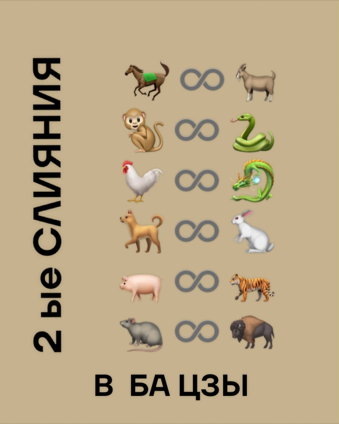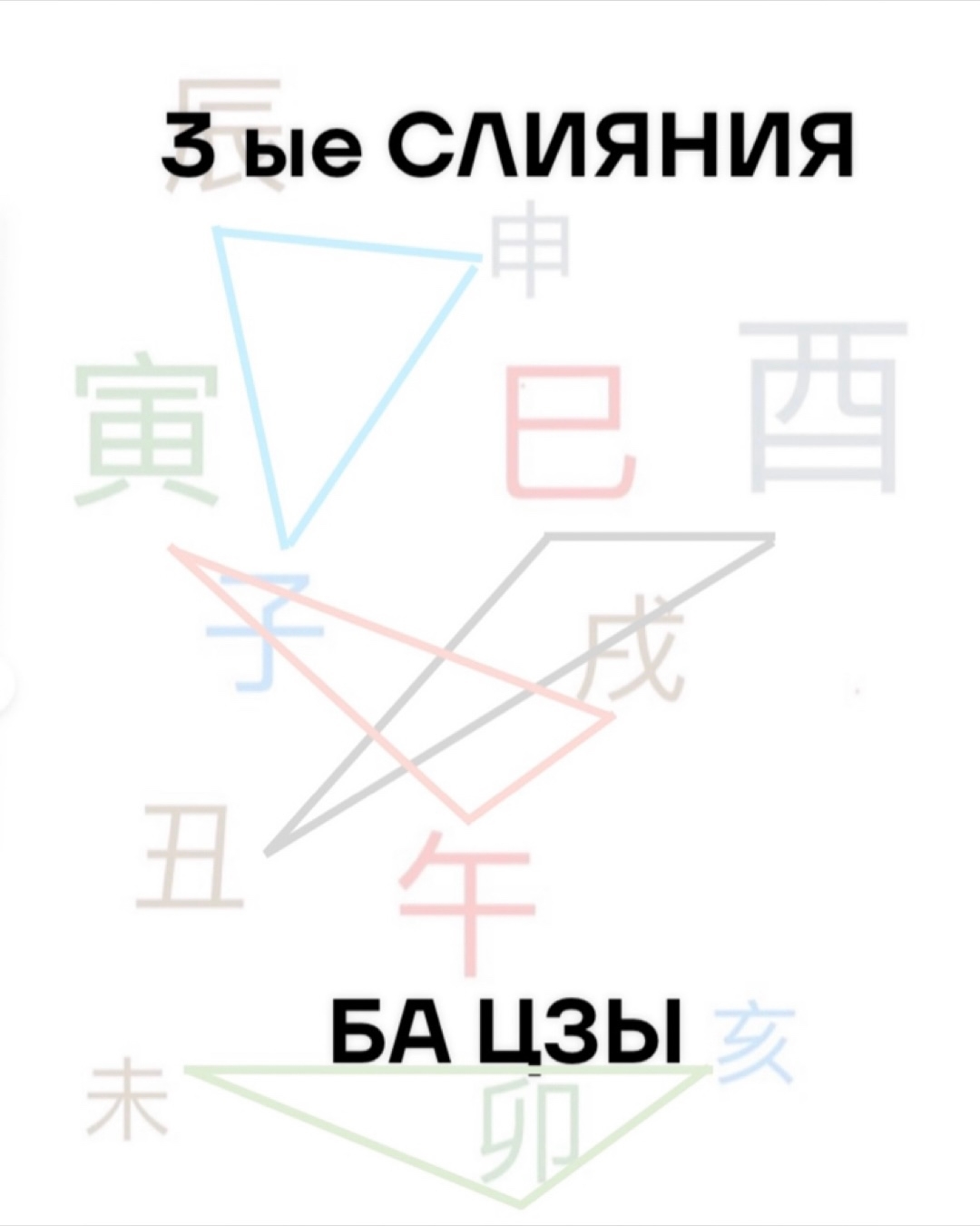 Это альянсы 子 Крыса — 辰 Дракон- 申 Обезьяна/ 丑 Бык- 巳 Змея- 酉 Петух/ 寅 Тигр- 午 Лошадь- 戌 Собака/ 卯 Кролик- 未 Коза- 亥 Свинья.