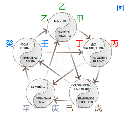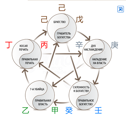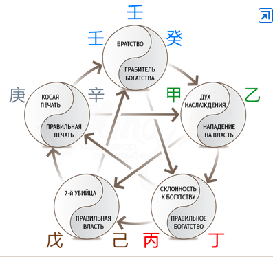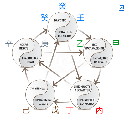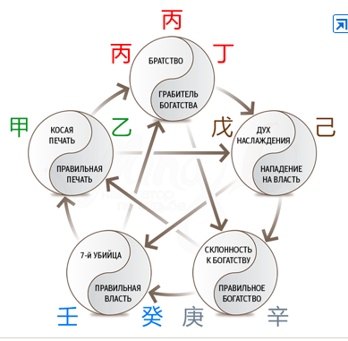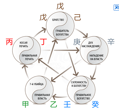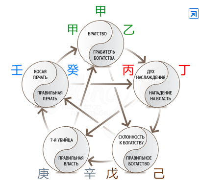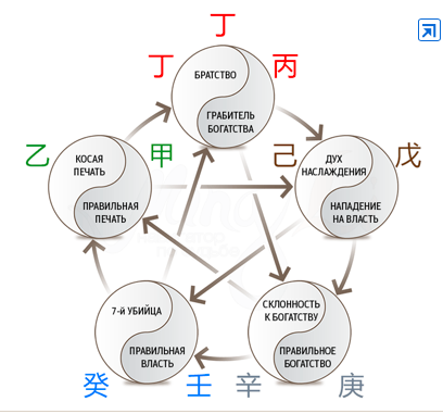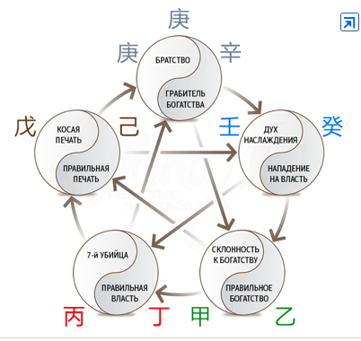 Далее от ДД определяем, каким из 10 Божеств является Огонь Инь, Земля Инь, Дерево Ян, Металл Ян. По таблице ниже. Разберем для нашего примера: